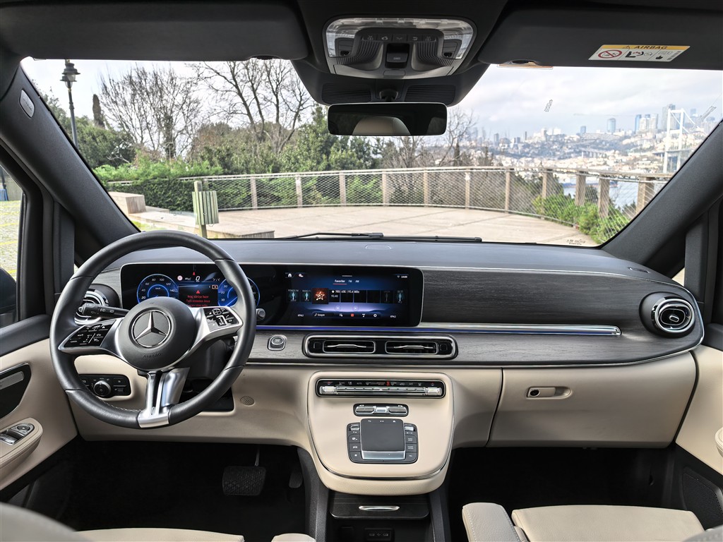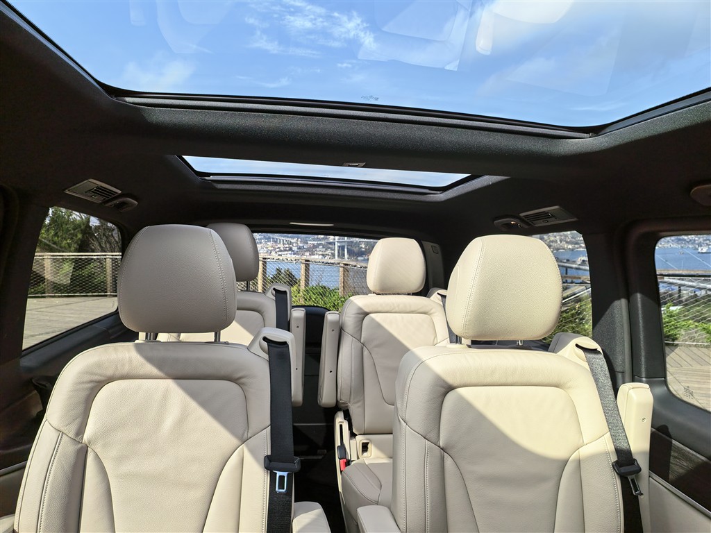 Kapıyı açtığınızda sizi tipik bir Mercedes atmosferi karşılıyor. Yumuşak malzemeler, ambiyans aydınlatma ve geniş dijital ekranlar sınıf algısını yukarı taşıyor. Özellikle çift ekranlı multimedya sistemi ve dijital gösterge paneli teknolojik hissi güçlendiriyor. Test aracımız 7 kişilik oturma düzenine sahipti. İkinci sıradaki bağımsız koltuklar uzun yolculuklarda ciddi konfor sunuyor. Üçüncü sıra bile yetişkinler için kullanılabilir genişlikte. Bagaj hacmi koltuk konfigürasyonuna göre değişse de kalabalık aileler veya VIP transfer işi yapanlar için fazlasıyla yeterli.