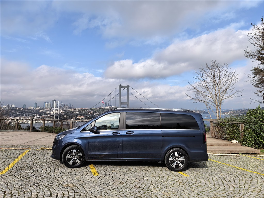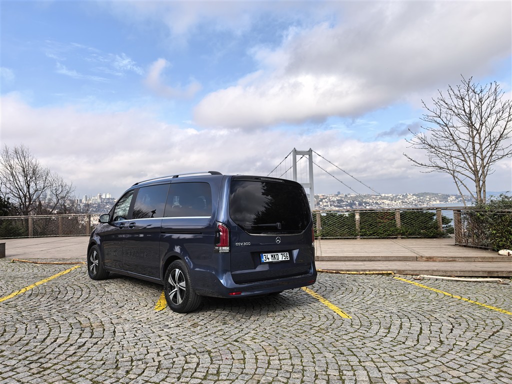 EQV 300, temelini V-Serisi’nden alıyor ancak elektrikli kimliğini detaylarda hissettiriyor. Kapalı ve krom detaylı ön panel, mavi vurgular ve özel jant tasarımları aracın standart bir V-Serisi olmadığını hemen belli ediyor. Yan profilde yüksek tavan ve geniş cam alanları ferahlık hissini artırıyor. Bu bir SUV değil; heybeti yüksekliğiyle değil, uzunluğu ve iç hacmiyle geliyor. Arka bölümde büyük bagaj kapağı ve düşük yükleme eşiği günlük kullanımı kolaylaştırıyor. Kısacası EQV 300, “Ben elektrikliyim” diye bağırmıyor; daha çok sessiz bir özgüvenle fısıldıyor.