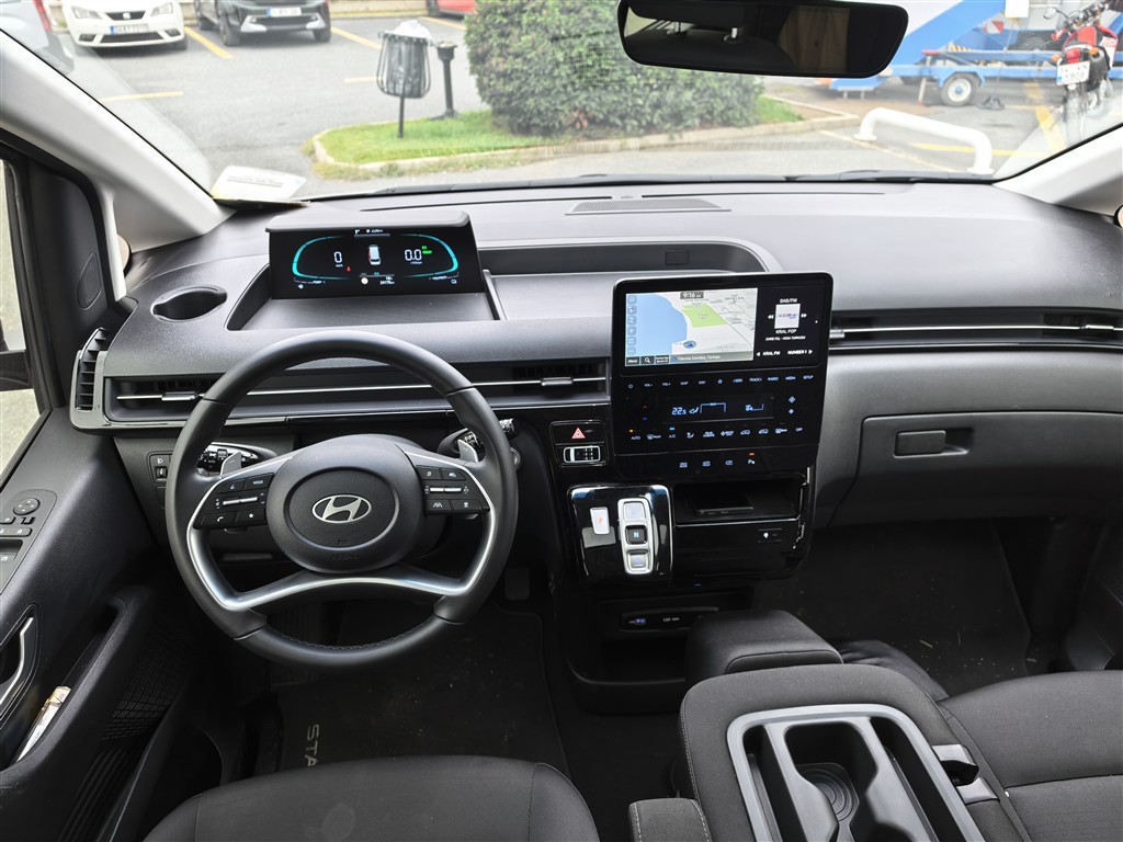 Hibrit sistem 1.6 litrelik T-GDI (turbo benzinli) motorla birlikte 44 kW’lık elektrik motorunu birleştiriyor. Toplam sistem gücü 230 beygir, tork ise 350 Nm seviyesinde. Bu değerler 8 ileri otomatik şanzımanla mükemmel uyum içinde çalışıyor. Model 0-100 km/s hızlanmasını 8.8 saniyede tamamlıyor. Modelin tüketim verisi 6.2 litre. Şehir içi kullanımda saf elektrik modunda 1–2 km kadar sessiz ilerleme mümkün. Sürüş sırasında geçişler neredeyse hissedilmiyor; motorun devreye giriş anı sadece devir göstergesinden fark ediliyor. Elektrik motoru düşük hızlarda STARIA’yı büyük bir zarafetle ilerletiyor, özellikle sabah saatlerindeki şehir içi trafiğinde tam bir konfor unsuru.