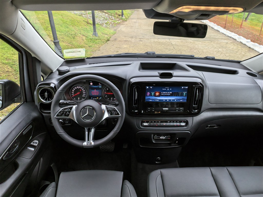 İç mekânda Vito, sürücü odaklı kokpit ve ergonomik koltuklarıyla uzun yolculuklarda konfor sunuyor. 2 kişilik ön sıra ve opsiyonel 3 kişilik orta sıra, ekip taşımacılığı için yeterli alan sağlıyor. Orta konsolda yer alan multimedya ekran, Apple CarPlay ve Android Auto destekli, sürücünün tüm ihtiyaçlarını kolayca yönetmesine imkân tanıyor.