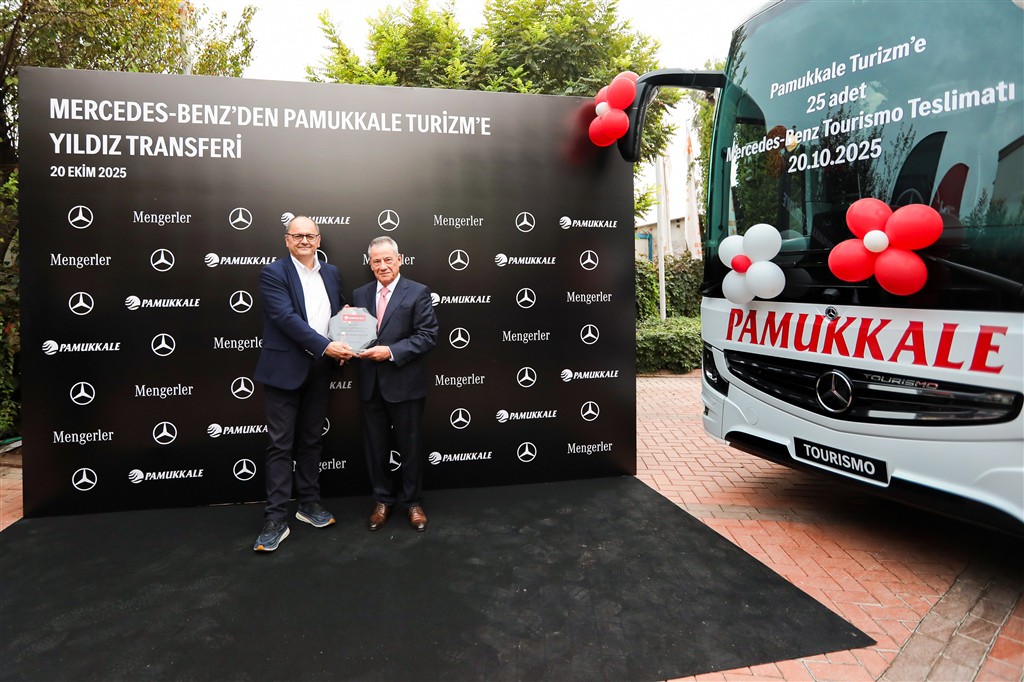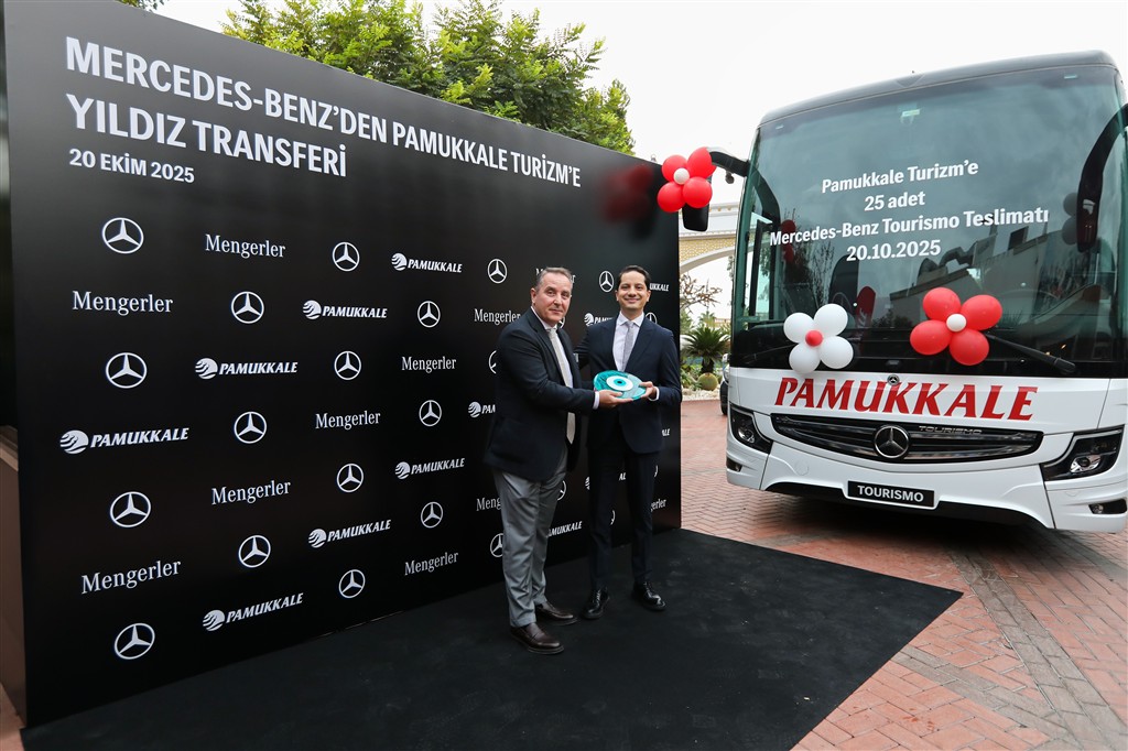Mercedes-Benz Türk Otobüs Filo Satış Grup Müdürü Burak Batumlu ise “Pamukkale Turizm ile köklü iş ortaklığımız, 1978 yılında gerçekleştirilen ilk teslimatla başlamış ve bugüne kadar karşılıklı güven, kalite ve sürdürülebilir başarı üzerine inşa edilmiştir. Bugün bu iş ortaklığımızı 25 adet otobüsümüz ile perçinliyoruz. Pamukkale Turizm’in filosu son yıllarda yaptıkları Mercedes-Benz otobüs yatırımları ile daha da güçlendi ve güçlenmeye devam ediyor. Böylesine köklü ve öncü bir markanın tercihini Mercedes-Benz otobüslerinden yana kullanması bizler için gurur kaynağı. Bu tercihin elbetteki en büyük sebeplerinden biri de otobüslerimizin ve marka olarak satıştan, satış sonrasına kadar yarattığımızın değer zincirinin müşterilerimize sunduğu katma değer. Mercedes-Benz Tourismo 16 RHD 2+1 otobüslerimiz, yüksek güvenlik standartları, üstün konfor seviyesi ve yakıt verimliliğiyle şehirlerarası yolcu taşımacılığında fark yaratan bir model. Teslim edilen yeni otobüslerin Pamukkale Turizm’in filosuna değer katacağına ve yolcuların seyahat deneyimini daha da ileriye taşıyacağına inanıyoruz. Yeni otobüslerinin Pamukkale Turizm’e hayırlı olmasını diliyoruz. Yeni araç alım tercihlerinde bizlere güvendikleri ve otobüslerimizi tercih ettikleri için Pamukkale Turizm’e ve satış işlemlerinde emeği geçen Mengerler bayimize çok teşekkür ediyoruz.” dedi.