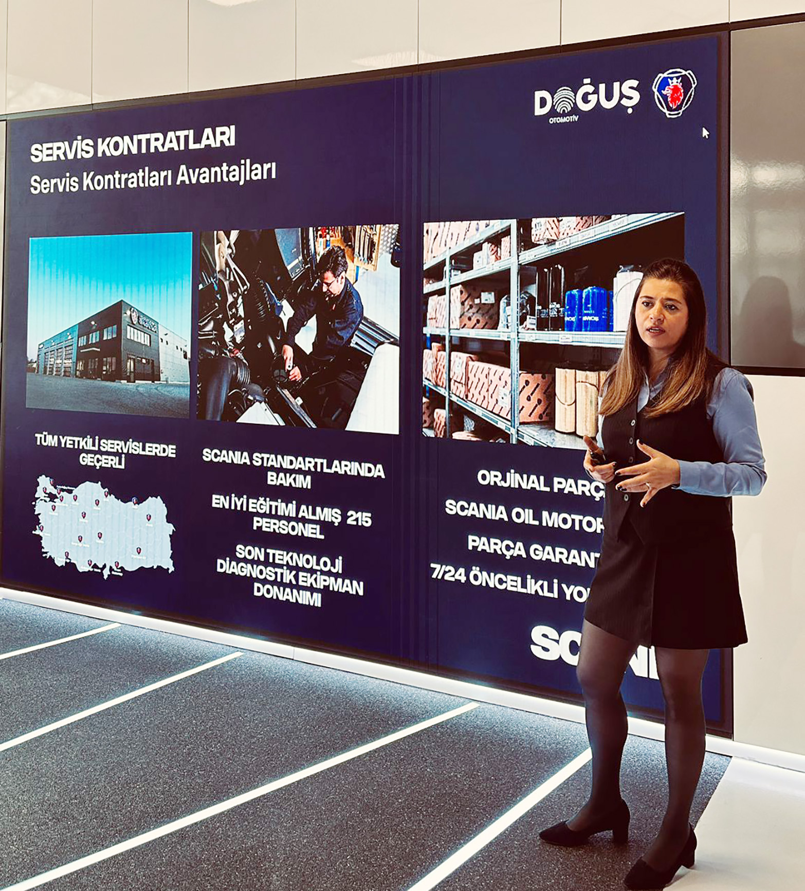 Basın toplantısında konuşma yapan Doğuş Otomotiv Scania Servis Kontratları Müdürü Suna Türk Tuzcuoğlu, servis paketleri, bakım ve onarım anlaşmalarının Scania müşterilerinin öngörülen bakım maliyetleri ile birlikte toplam işletme maliyetlerini daha da düşürmelerine yardımcı olduğu belirtti.